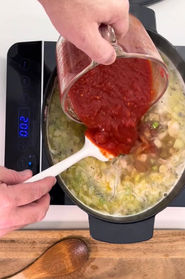 9. Add the beef stock and add crushed tomatoes, no need to bring to the boil as its going into the oven.