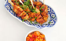 These fragrant, char-grilled Thai Chicken Skewers are best enjoyed with the knee-buckling peanut sauce. Fantastic as a starter or main but a convenient to prep ahead as a hors d'oeuvre.